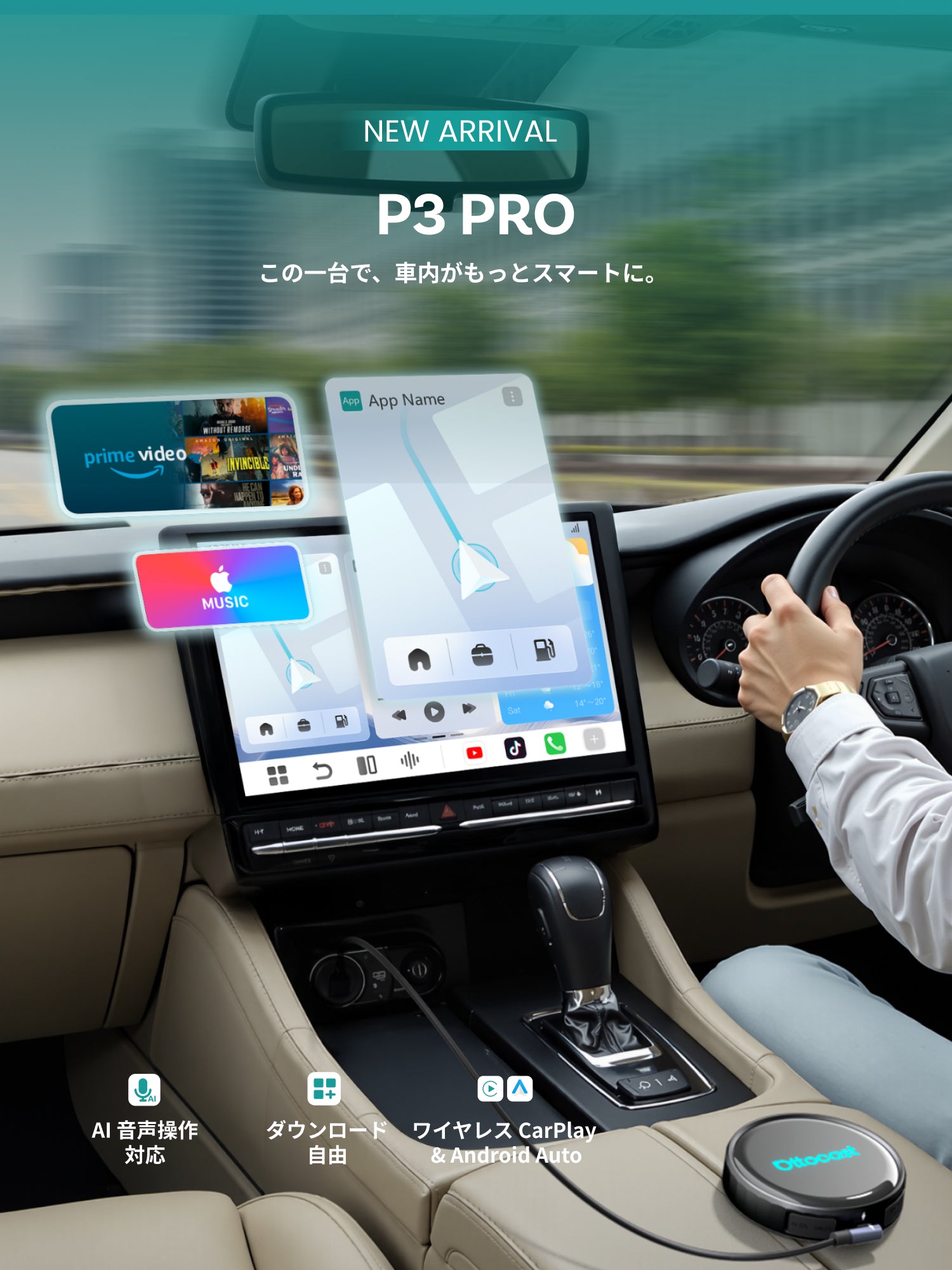 - ワイヤレス CarPlay & Android Auto対応