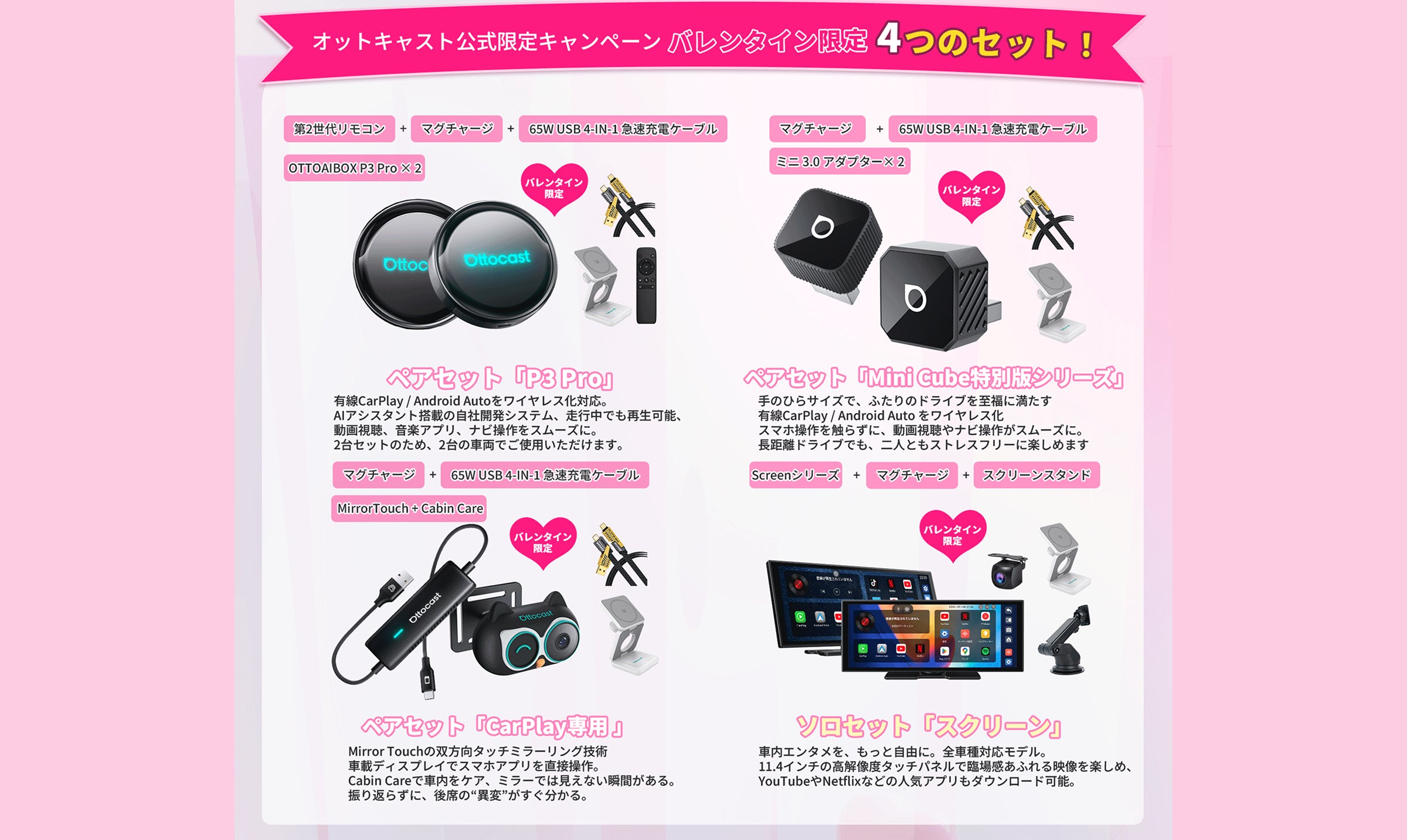 使いやすさとデザインにこだわった正規品シリーズ。ケーブルやスタンドなど、AIBOXとの相性も抜群。AIBOXシリーズやワイヤレスアダプターとの互換性を最適化し、安定した接続性と高い耐久性を実現。