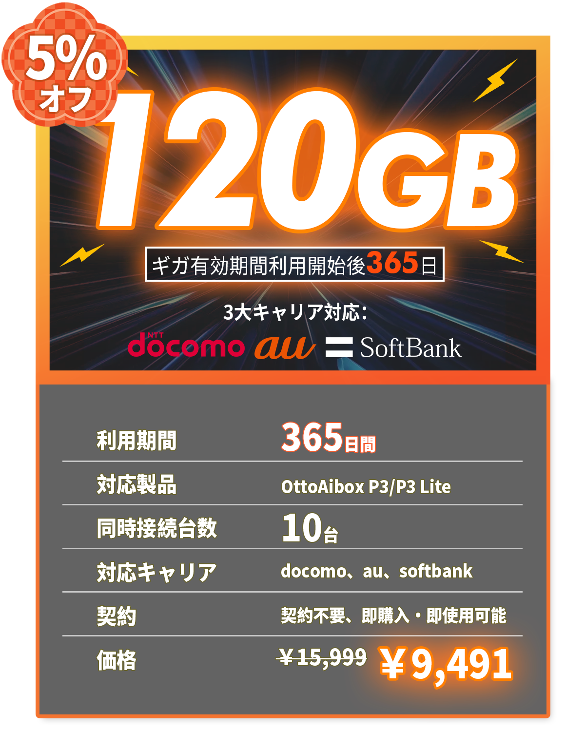 AIBOX&120GB データバンドル プロモーション割引