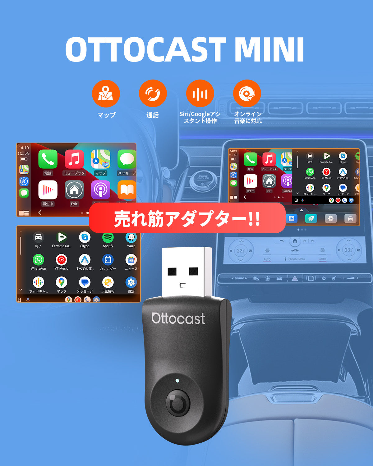 こちらを確認してください。車がリストに掲載されている場合、基本的に起動することができます。ただし、無線接続型のBMW車の場合は、BMW専用のOttoaibox i3を選択する必要があります。有線Apple CarPlayに対応しているかどうかを確認する方法は、例えば、iPhoneをLightningケーブルで車のCarPlay端子に接続し、Apple CarPlayが起動するかどうかを確認することです。起動すれば、基本的に使用可能です。