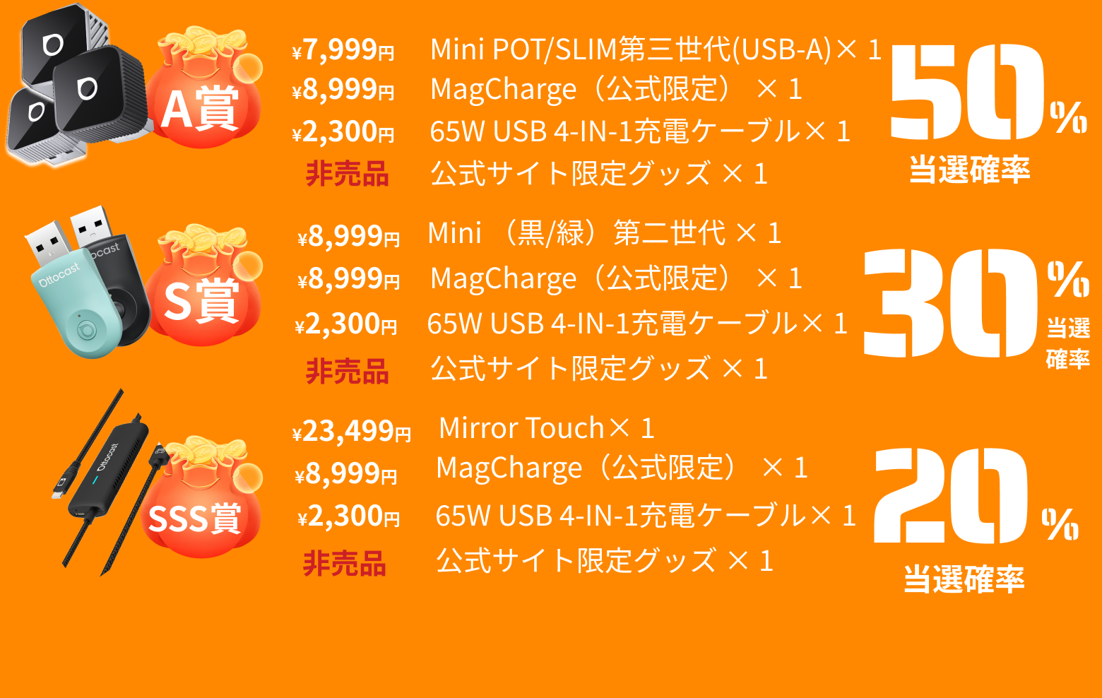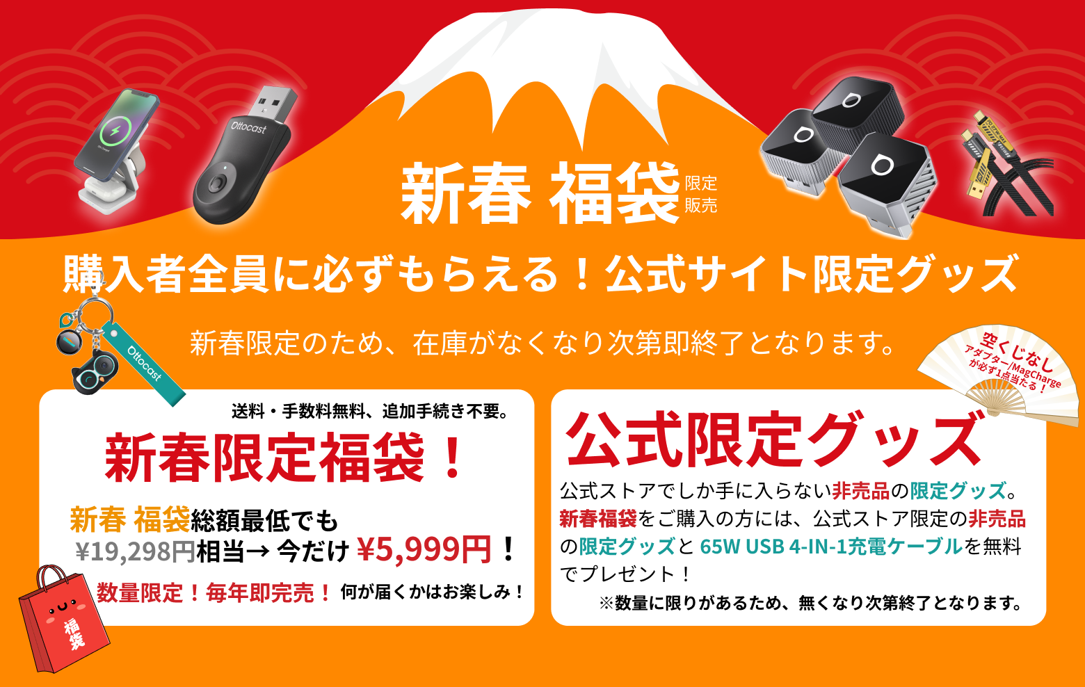 どちらの福袋をご購入いただいても、OTTOCAST 非売品の限定グッズと65W USB 4-IN-1充電ケーブルをプレゼント!
