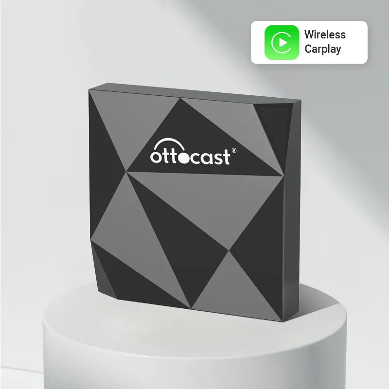 オット ワイヤレスは、有線CarPlayやAndroid Autoに対応した車両を、ワイヤレス接続にアップグレードするための小型デバイスです。USBポートに差し込むだけで、スマホと車のディスプレイがWi-FiやBluetoothを通じて自動的に接続され、ケーブル不要の快適な車内体験を実現します。