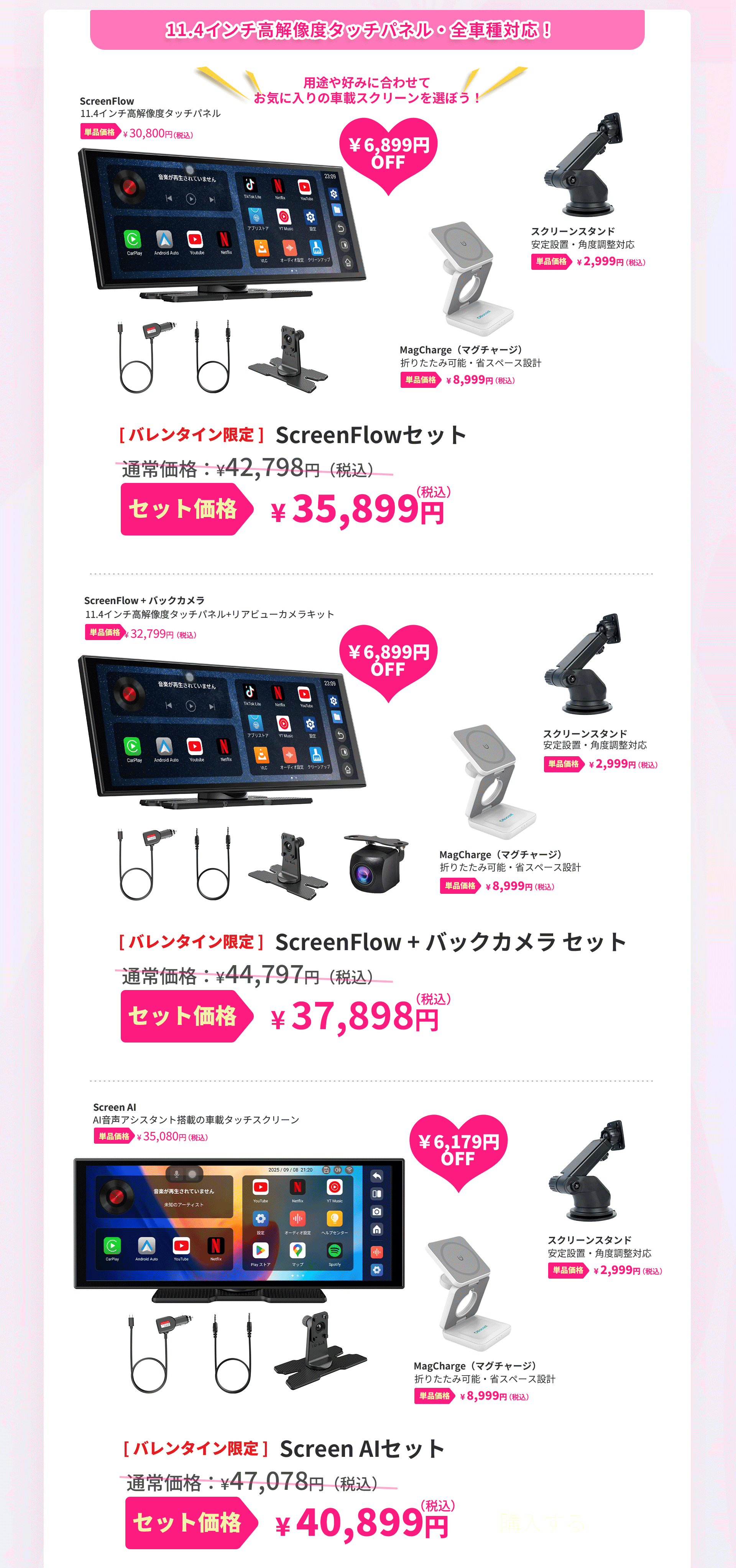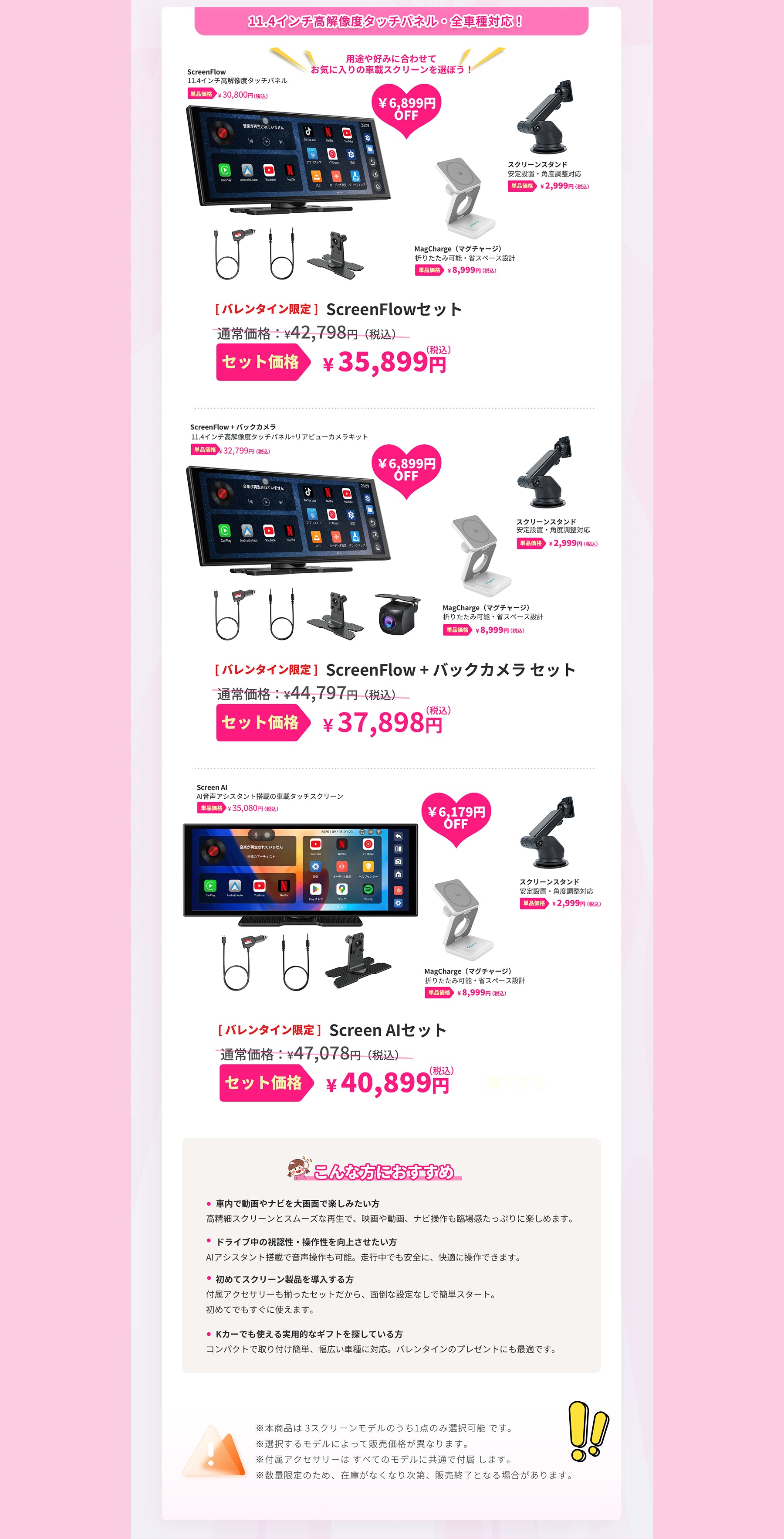 用途や好みに合わせて3モデルから1点を選択。面倒な追加購入は不要、必要なアクセサリーはすべて同梱。初めてでも迷わず使える、バレンタイン期間限定ペアセットです。