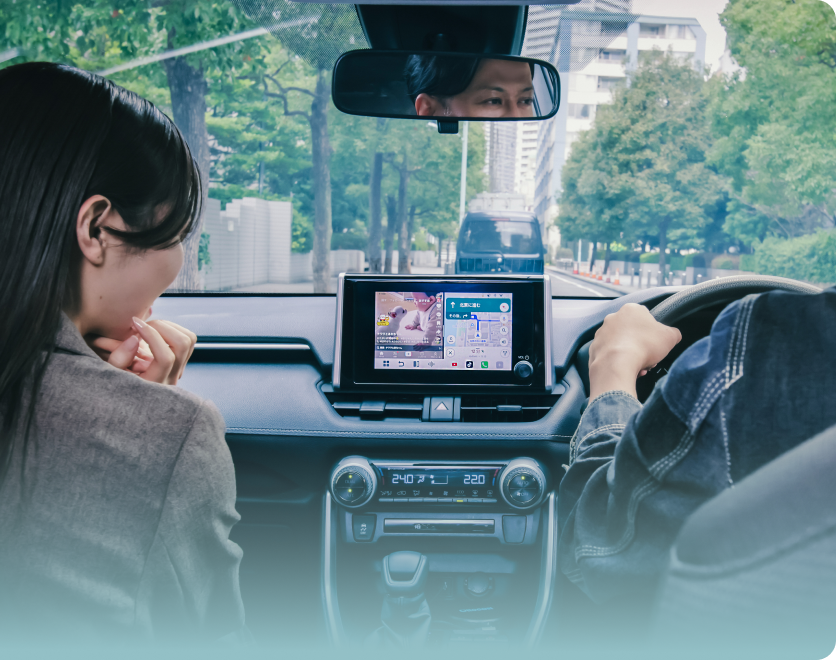 ドライバーはナビに集中。助手席・後部座席はエンタメ視聴。 ナビ × 映画 / 地図 × 音楽など自由にマルチタスク。