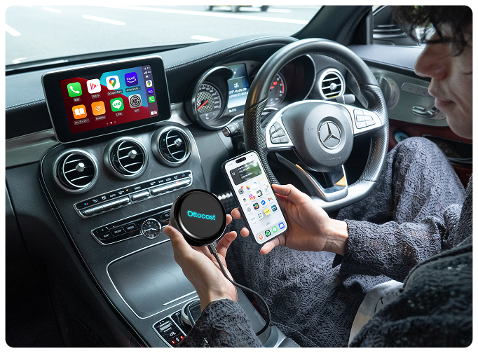 ✅ 有線/ワイヤレス CarPlay & Android Auto対応 — 切替スイッチで簡単に操作。