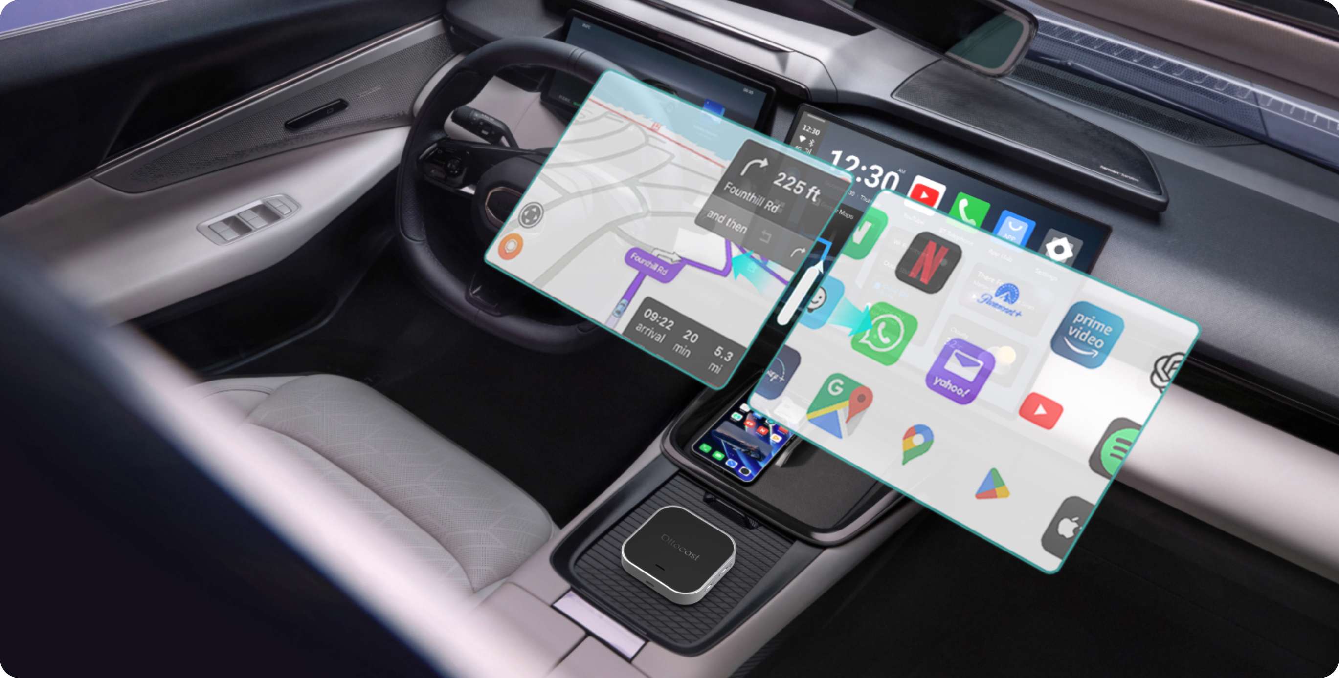 CarPlayでも、Android Autoでも終わらない。すべてのアプリにシームレスアクセス。クルマ時間をもっと自由に。