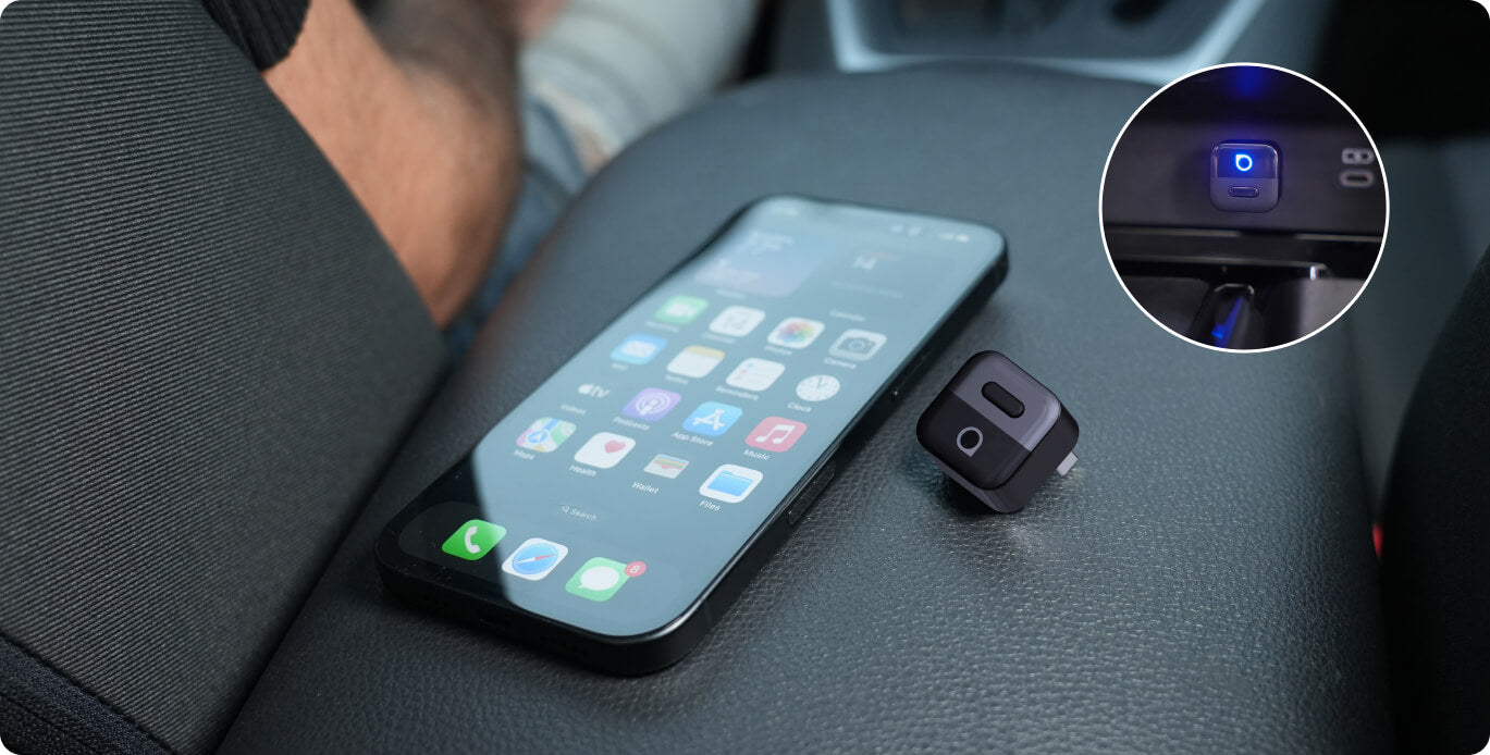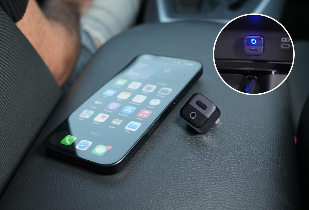 瞬時にワイヤレス化 — 有線CarPlay/Android Autoをわずか数秒でワイヤレス接続に変換。