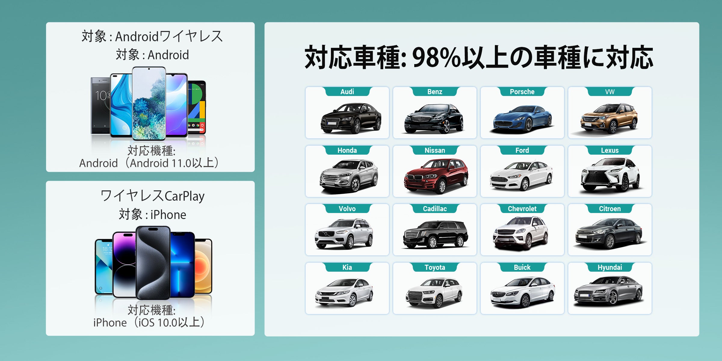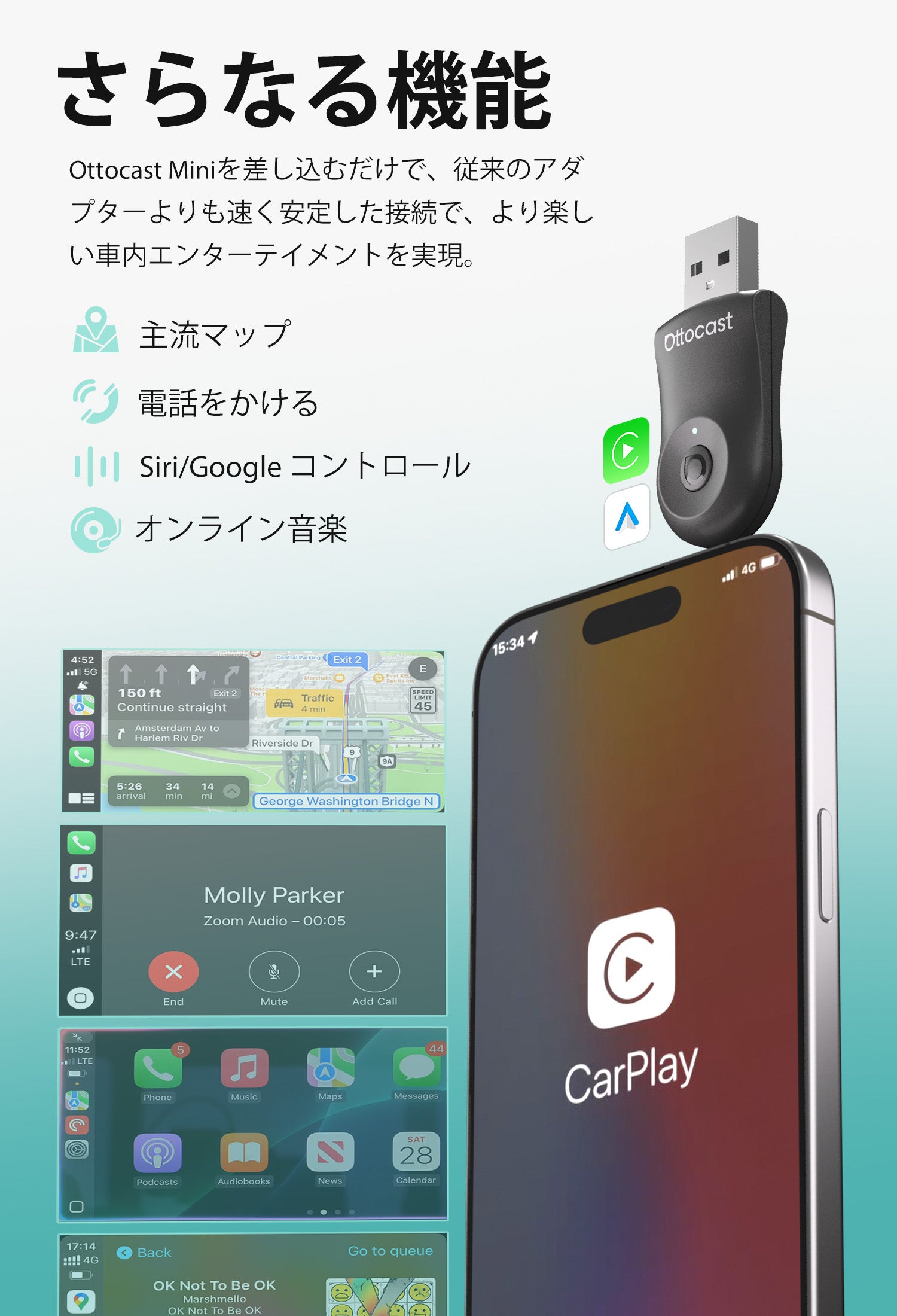 対応モデル: 工場出荷時に有線接続された CarPlay または有線接続された Android Auto を搭載した車両 (2016 年以降)。