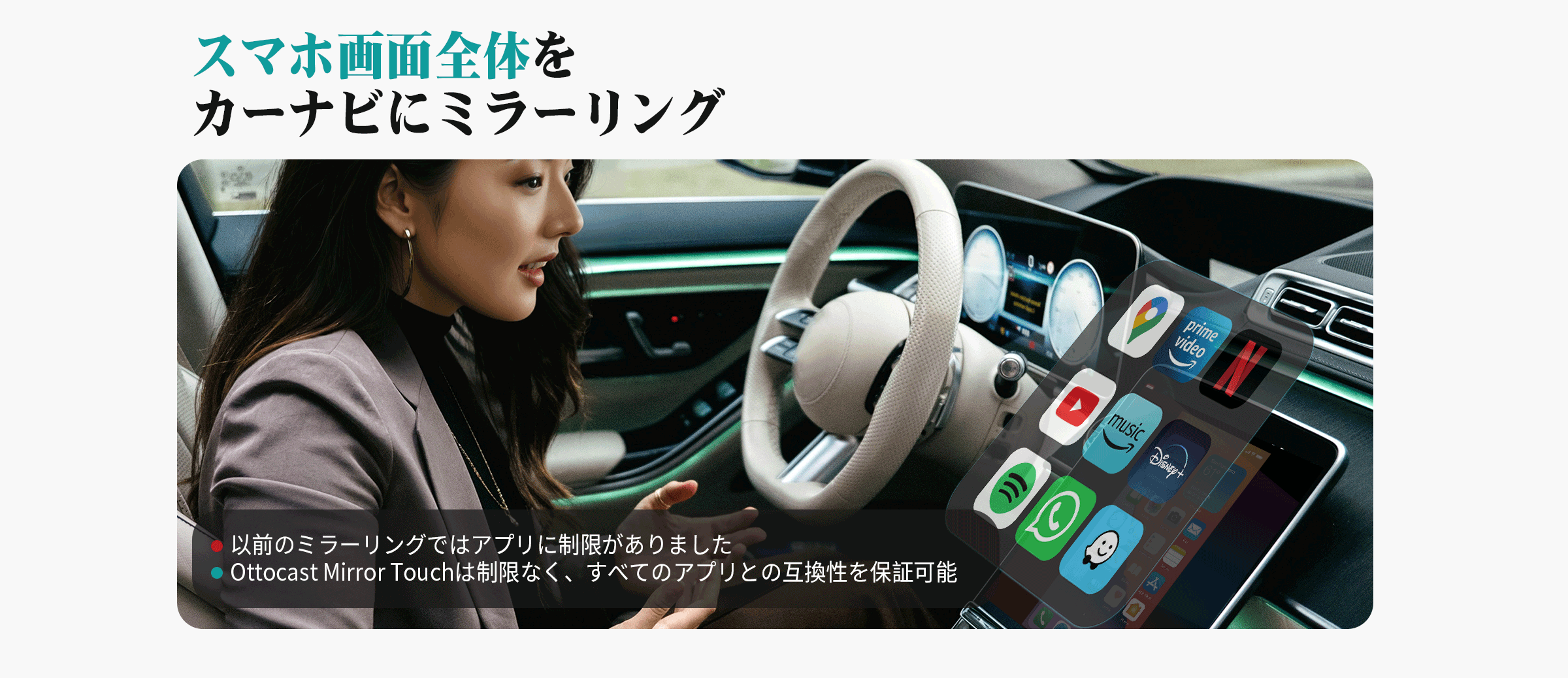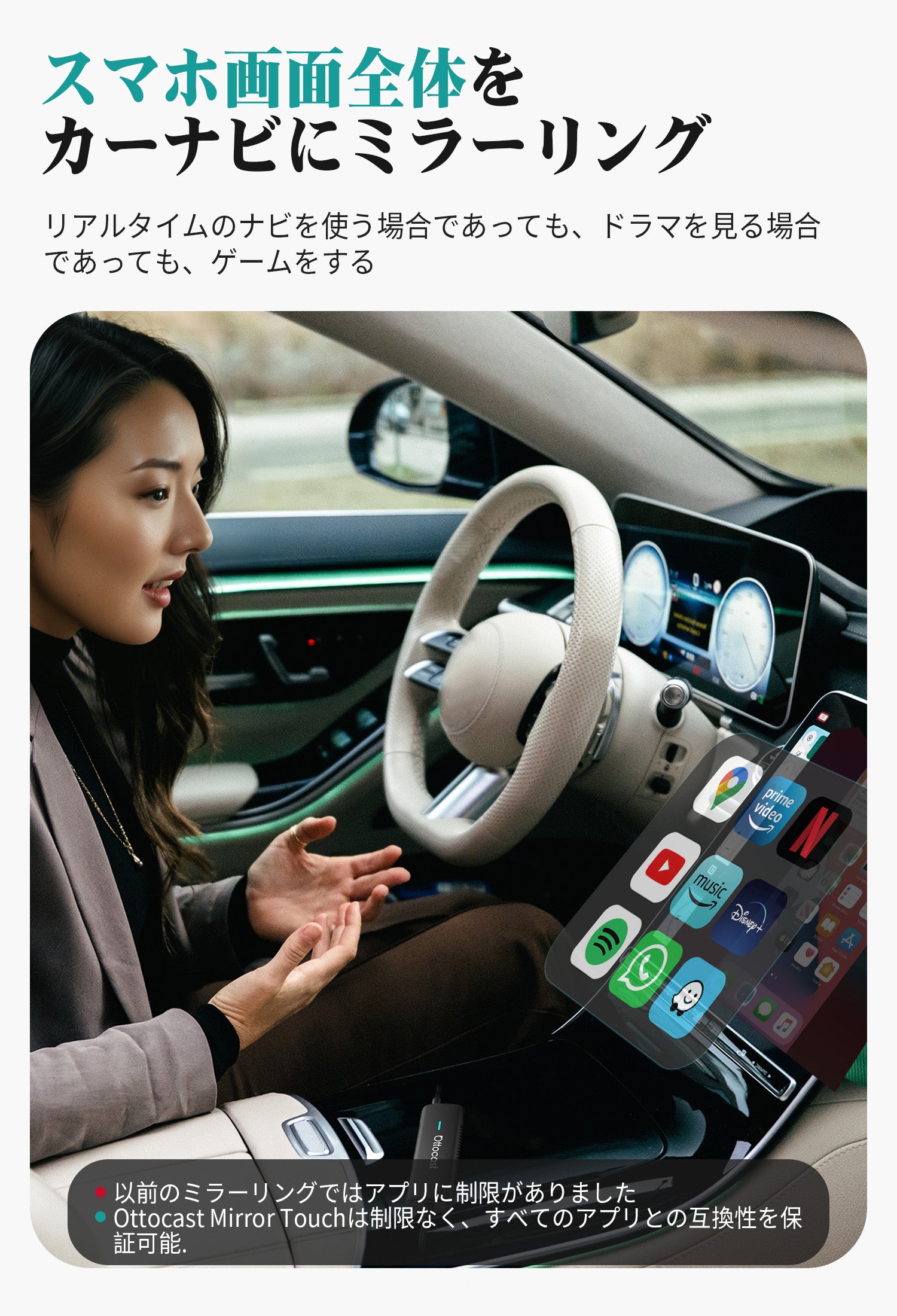 有線接続のCarPlayをワンタッチでワイヤレス化。煩わしいケーブルから解放!