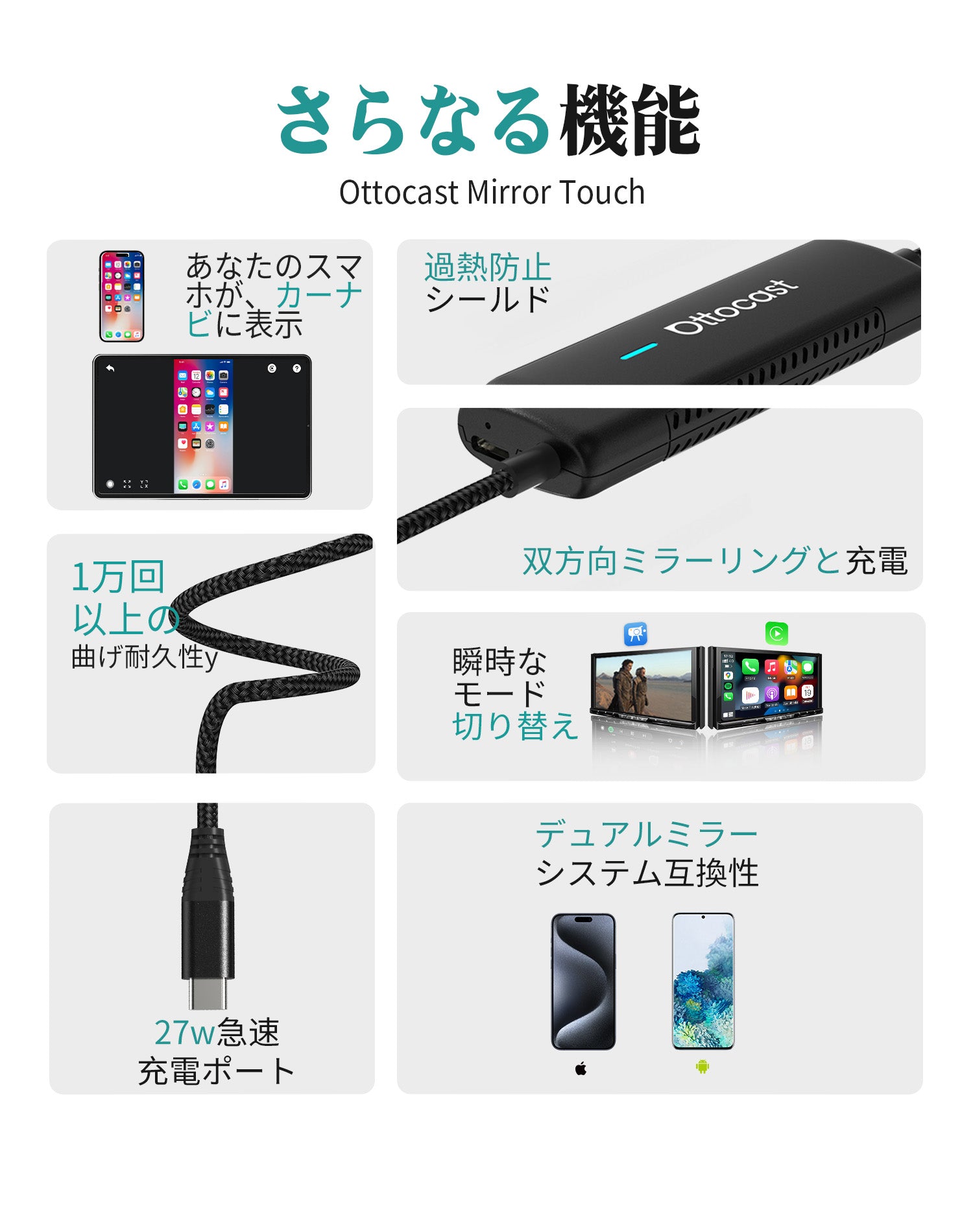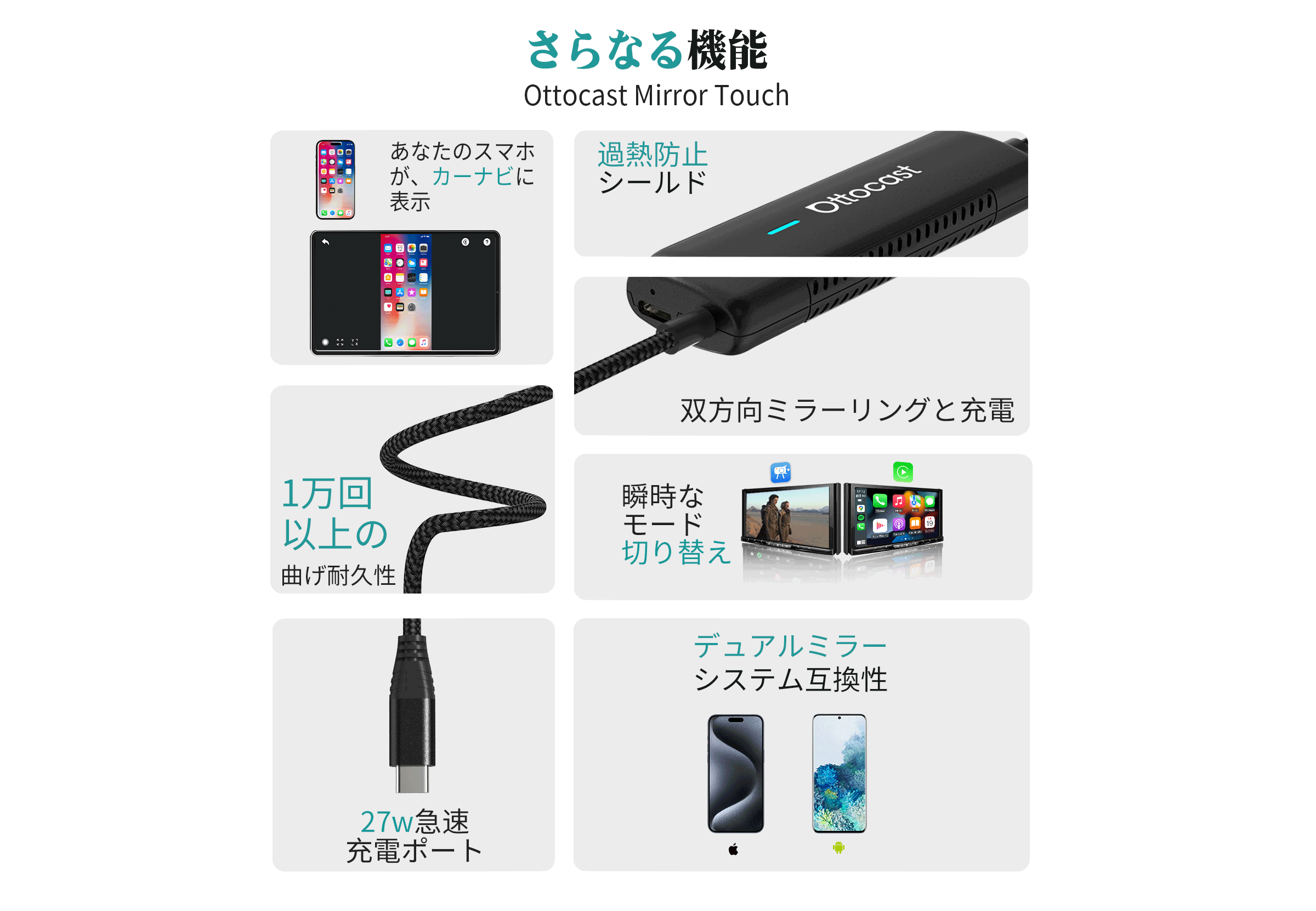 ✅ iOS・Androidのミラーリング対応