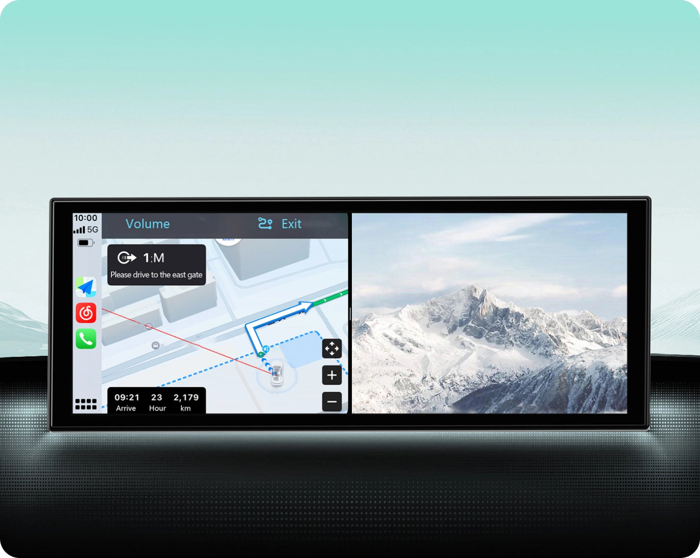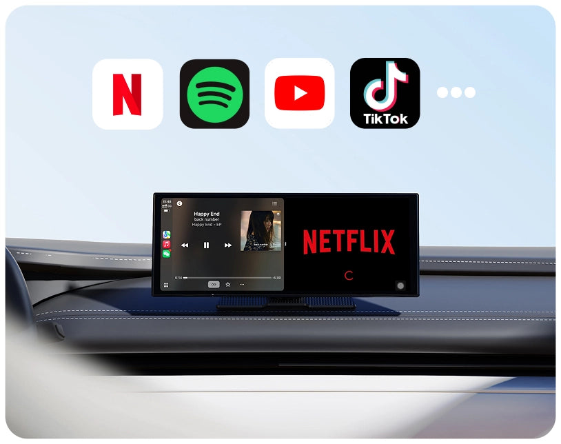 ナビとアプリを並行して操作しながら、動画も楽しめる。助手席の乗客も退屈知らずに!