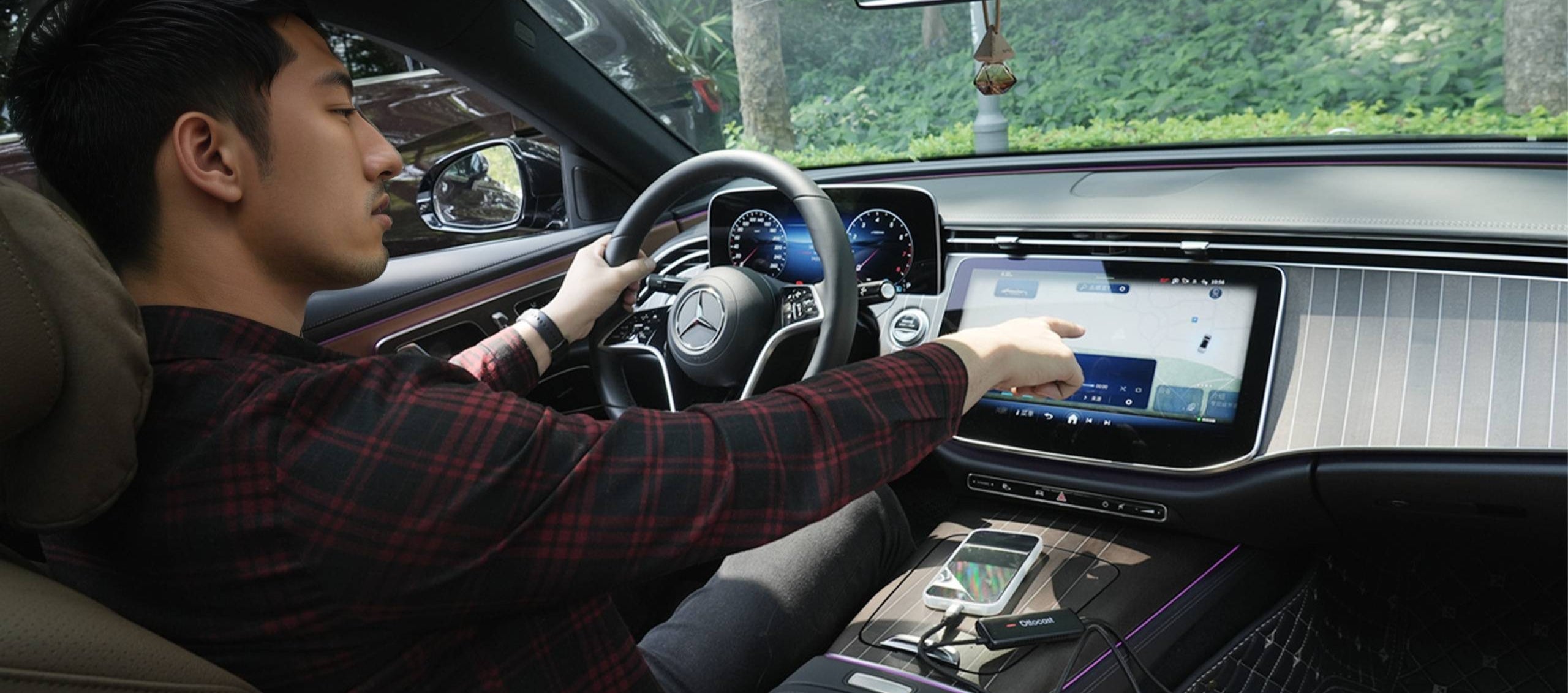 まるで自分のスマホを使っているかのようにカーナビでスワイプ・スクロール・タップ可能